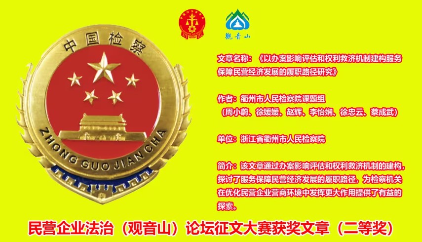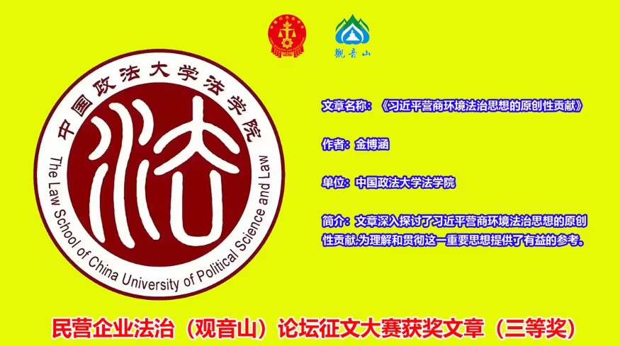 关于民营企业法治(观音山)论坛 征文大赛评选结果公布 ![]() 全文约2648字,预计阅读需要5分钟。 正文: ![]() 在新时代的征程中,民营企业作为中国经济社会发展的重要力量,其营商环境的法治化建设对于企业的生存发展乃至整个经济体系的活力与竞争力具有至关重要的作用。 ![]() 为深入贯彻全面依法治国的基本方略,积极响应国家关于优化营商环境的号召,中国行为法学会联合广东观音山国家森林公园,成功举办了关于民营企业法治(观音山)论坛征文大赛。本次大赛以“民营企业营商环境的法治化探索与实践”为主题,旨在通过广泛征集高质量的研究成果与实践经验,共同推动民营企业营商环境的法治化建设。 自征文启事发布以来,大赛得到了法学界、企业界及社会各界的广泛关注和积极响应。共收到来自全国各地的投稿近百篇,内容涵盖了民营企业法律权益保护、市场准入与退出机制、公平竞争环境的营造、政府服务效能的提升以及营商环境的法治保障等多个方面。这些投稿不仅展示了作者们深厚的法学功底和丰富的实践经验,更体现了他们对民营企业营商环境法治化建设的深刻思考和积极贡献。 经过组委会学术委员会的严格评审,最终评选出了一批优秀文章。这些文章在主题深度、创新性、实践价值等方面均表现出色,为民营企业营商环境的法治化建设提供了有益的借鉴和参考。现将评选结果公布如下: 一、一等奖(空缺) 二、二等奖(4名) ![]() 1.文章名称:《以办案影响评估和权利救济机制建构服务保障民营经济发展的履职路径研究》 作者:衢州市人民检察院课题组(周小蔚、徐媛媛、赵辉、李怡娴、徐忠云、蔡成武) 单位:浙江省衢州市人民检察院 简介:该文章通过办案影响评估和权利救济机制的建构,探讨了服务保障民营经济发展的履职路径,为检察机关在优化民营企业营商环境中发挥更大作用提供了有益的探索。 2.文章名称:《从观音山实践看民营企业法治保障的完善路径》 作者:李星潭 单位:中新在线网 简介:文章以广东观音山国家森林公园的法治实践为例,深入分析了民营企业法治保障的现状与不足,并提出了完善的路径和建议,为民营企业法治保障提供了有益的参考。 3.文章名称:《东莞观音山:一座山的流浪》 作者:田涧 简介:本文以广东观音山国家森林公园为案例,通过深入剖析其在发展过程中的法治困境与挑战,展现了民营企业在自然资源保护与利用中的独特地位与作用,同时为民营企业法治化建设提供了宝贵经验。 4.文章名称:《民促法》视角下的观音山森林公园资质撤销风波 作者:金仲兵 单位:北京大运恒通文化传媒公司 简介:本文从《民促法》的视角出发,对观音山森林公园资质撤销风波进行了法律层面的深入剖析。通过案例分析,揭示了资质撤销过程中的法律问题和争议焦点,提出了依法解决资质撤销纠纷的建议。 三、三等奖(10名) ![]() 1、文章名称:《区域协同下法治化营商环境的司法保障路径研究——以S市Q区法院为分析样本》 作者:高金登、李萌竹 单位:上海市青浦区人民法院 简介:文章以S市Q区法院为分析样本,深入研究了区域协同下法治化营商环境的司法保障路径,为提升司法保障效能提供了有益的借鉴。 2、文章名称:《涉民营企业经济犯罪社会危险性量化评估体系研究》 作者:宋珊珊、于心怡 单位:上海市徐汇区人民检察院 简介:该文章构建了涉民营企业经济犯罪社会危险性量化评估体系,为准确评估涉案民营企业的社会危险性、科学制定处置措施提供了有力支持。 ![]() 3.文章名称:《习 近平营商环境法治思想的原创性贡献》 作者:金博涵 单位:中国政法大学法学院 简介:文章深入探讨了习.近平营商环境法治思想的原创性贡献,为理解和贯彻这一重要思想提供了有益的参考。 4.文章名称:《民间投资的市场准入功能与政策建议》 作者:任国征 单位:北京中央财经大学绿色金融国际研究院 简介:该文章分析了民间投资的市场准入功能,并提出了相应的政策建议,对于促进民间投资、优化市场准入机制具有重要意义。 5.文章名称:《环保信用制度赋能民营企业绿色转型的学理基础及体系优化》 作者:吕健豪 单位:河南财经政法大学生态文明研究中心 简介:文章从学理基础和体系优化的角度出发,深入探讨了环保信用制度如何赋能民营企业绿色转型,为推动民营企业绿色发展提供了有益的探索。 ![]() 6.文章名称:《平等保护视域下民营企业内部人员背信犯罪治罪与治理研究》 作者:东莞市人民检察院课题组(向东、袁国何、宋颖、陈剑峰、何雪丽、卢庆平) 单位:广东东莞市人民检察院 简介:该文章从平等保护的视角出发,深入探讨了民营企业内部人员背信犯罪的治罪与治理问题,提出了具有创新性和针对性的法治化建议,对于维护民营企业的合法权益、促进企业的持续发展具有重要意义。 ![]() 7.文章名称:《民营经济促进法实施背景下异地趋利性执法的治理对策与机制优化研究》 作者:张世龙、盛玉华 单位:甘肃政法大学民商经济法学院 简介:该文针对民营经济促进法实施过程中出现的异地趋利性执法问题,提出了针对性的治理对策和机制优化方案,为规范执法行为、维护市场秩序提供了有益参考。 8.文章名称:《强化民营企业权益司法保障的实践纪要》 作者:贾霆 单位:北京金桥律师事务所 简介:文章总结了司法