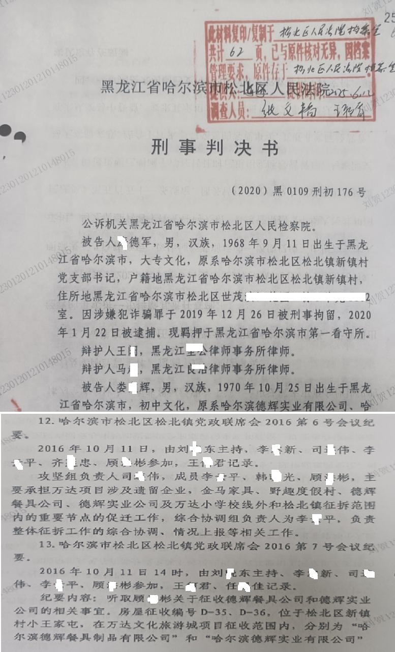 | 哈尔滨高新区:7千多万拆迁诈骗案再起波澜,原征收办副主任当庭举报纪委书记 文 李海波 10年前哈尔滨一起高达7千多万的拆迁诈骗案又起波澜:原征收办副主任沈小愚被控玩忽职守,而核心证据,都显示和被告人沈小愚无关。 4月1日上午近10点,沈小愚出现在松北区法院第十七审判庭,法院对他涉嫌玩忽职守一案公开审理,至晚上8时庭审才结束。这个小案子本来应该不会超过5小时就会结束的,却花了9个小时!因为沈小愚和辩护律师针对公诉人提供的证据,逐一进行了阐释和反驳,让起诉书指控的内容漏洞百出…… 拆迁 企业获赔7千多万元引发的诈骗案 多人判刑 2012年,哈尔滨市松北区启动万达文旅城项目,松北镇对辖区进行征地拆迁补偿工作。由于德辉公司是招商引资企业,在拆迁中有一处房产权属一直没有定性,拆迁工作难以推进。直至2016年镇政府在公司提供相关资料后,按照区政府文件“一事一议”下确定了非住宅的权属后才得以顺利拆迁补偿。 2019年5月松北警方立案,直到2022年12月12日松北区法院才下达黑0109刑初176号刑事判决书(刑终258号刑事裁定书维持原判)认定:廉某军、娄某辉构成诈骗罪故意提交虚假证明材料,误导松北镇政府作出错误认定,发放了7200余万元拆迁补偿款。二人被判诈骗罪获刑15年,并出罚金50万,评估员赵某洋因出具证明文件重大失实罪被判刑1年零5个月。 之后法院以刘某东、顾某彬等人构成玩忽职守罪判刑,主要原因是其作为松北镇相关工作人员,具有材料真实性核查、房屋性质认定的法定职责,却未履行该职责,导致虚假材料被采信、错误认定被作出,其行为与损害结果之间存在直接因果关系。 留置 地毯排查 查出10年前重大“问题” 2025年2月22日上午8点,松北区纪委电话通知沈小愚去纪委谈话,之后被留置。 留置后纪委监委对其父母、姐姐姐夫等家属的所有财产情况进行地毯式排查,没有查出沈小愚有任何经济问题。对其涉及德辉诈骗案中玩忽职守,他多次明确的表示与事实不符。 4月7日,感觉得不到公正处理,沈小愚向松北区纪委明确申请提级办理。6月24日,沈小愚被批捕。10月27日,松北区监委向检方移交了沈小愚在德辉案中的涉嫌玩忽职守。 专家 沈小愚不构成玩忽职守罪 法庭上,沈小愚辩护律师向法院提交了由中国政法大学、清华大学和北京师范大学三位法学教授对此案进行论证的法律意见书,意见书做出明确结论:沈小愚不构成玩忽职守罪。 庭审 滔滔不绝的被告 激昂陈词的律师 拍桌反对的公诉人 2025年12月12日,松北区检察院向区法院移送审理。公诉机关认为沈小愚存在两项核心失职行为:一是2016年10月11日,沈小愚列席参加松北镇党政联席会议,该会议决定对德辉公司涉案两处房产按照非住宅予以征收补偿,沈小愚在参会过程中未正确履行监督指导职责,未对该决议提出异议,导致错误决议得以形成;二是2016年10月31日,沈小愚在明知被征收房屋缺少集体建设用地使用证等关键权属证明材料的情况下,未正确履行审核职责,在征收协议签订联审单上征收主体意见审核人处签字确认,导致德辉公司骗取巨额征收补偿款,公共财产遭受重大损失。公诉机关认为,沈小愚构成玩忽职守罪。 在庭审中,公诉人提供的证据包括了联席会会议纪要、联审单、区政府42号、60号文件、生效的法院判决书及诸多证人证言等。对此沈小愚逐条进行了辩驳,他指责公诉人对其提供的文件及证人证言有选择性的摘取,而对被告人有利的内容没有说出来:对于拆迁需要土地证他多次提到拆迁不是必须要土地证,从提供的政府文件就可以看出;多数证言说明了沈小愚是参加的协调会而不是党政联席会…… ![]() 党政联席会会议纪要:没有沈小愚名字出现 对于2016年10月11日参会,沈小愚说他是按照主任丁某超的通知,陪同郑某龙副区长参加其在松北镇组织召开的房屋征收工作推进会,是遵照高书记的会议指示去推进涉案区域房屋征收工作的进度,通报前期工作情况,协调解决工作中存在的问题,遵循郑区长“就是工作推进,不定事”的原则,不涉及具体事项的决策,会后他和郑副区长及后来的丁主任一道离开,并没有参加松北镇党政联席会议。 ![]() 刑事判决书认定的事实:二份党政联席会没有沈小愚 ![]() 生效的176号刑事判决书中的征收办主任丁某超、副区长郑某龙的证言:只对材料进行审核,真实性合法性由街镇负责。 ![]() 沈小愚签字的联审单,征收办只有他没有签署日期 对于在征收协议签订联审单上签字,沈小愚说第一次报给他签字时发现会议纪要存在问题,便找到征收办丁主任一道去郑副区长那说明了情况。之后报上来的联审单区征收办管理科负责人王某秋已对材料进行了初步审核并签字,主任丁某超也已签字确认,丁主任要求他也要签字,所以沈小愚才最后签了字,但没有写下签字时间:按实际时间写不合规矩,因为丁主任已经签字,作为副主任不应该在丁主任签字之后才签;时间提前签写又违规。 法庭上沈小愚说:如果说没有土地使用证不能补偿,那松北区有多起没有土地证都是按照程序进行了拆迁补偿的! ![]() 松北区政府60号文件规定非住宅房屋认定标准是“经镇征拆工作领导小组认定” ![]() 松北区政府42号文件明确镇、街道是房屋征收主体,对资料真实性准确性合法性负责 ![]() 2016年4月19日,德辉的房屋就被镇政府确认为“非住宅” 对于检察机关