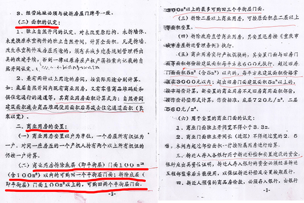 1997年,荣昌县昌元初级中学扩建校园,需拆迁昌元镇大东街106-128号、132号-140号、144号(双号)及附号、祥和路18至32号(双号)及附号等约六千平方米建(构)筑物。 3月8日,在县老干局会议室召开拆迁安置动员大会,房管局副局长张远淑(下称张局长)主持会议,说今年的拆迁政策是,各了个各的算。房管局按评估价把你的房子买过来,修好后你又按评估价买回去。 梁太英说:“我和我老公多次要求看拆迁文件,张局长说是口头传达的,没有拆迁文件。” “我是在2020年5月12日通过政府信息公开方式,才获取由重庆市住房和城乡建设委员会提供的1997年重庆市城市房屋拆迁适用的是《重庆市城市房屋拆迁管理条例》(重人发〔1992〕19号),又在2022年1月5日获取由重庆市荣昌区房屋征地拆迁中心(下称征地拆迁中心)获取的《荣昌府发〔1995〕60号关于旧城改造中商业用房的认定及安置的通知》早在1995年3月24日出台。” (重人发〔1992〕19号)。梁太英 供图 荣昌府发〔1995〕60号。梁太英 供图 “虽然在2022年调取的房屋拆迁公告显示有拆迁条例,其真实性存在问题。日期也是‘197年’3月7日,为三国时期。” 2022年调取的房屋拆迁公告。梁太英 供图 “在2007年调取的《拆迁安置补偿协议书》里,仍然没有公开当年拆迁安置补偿政策文件依据。”